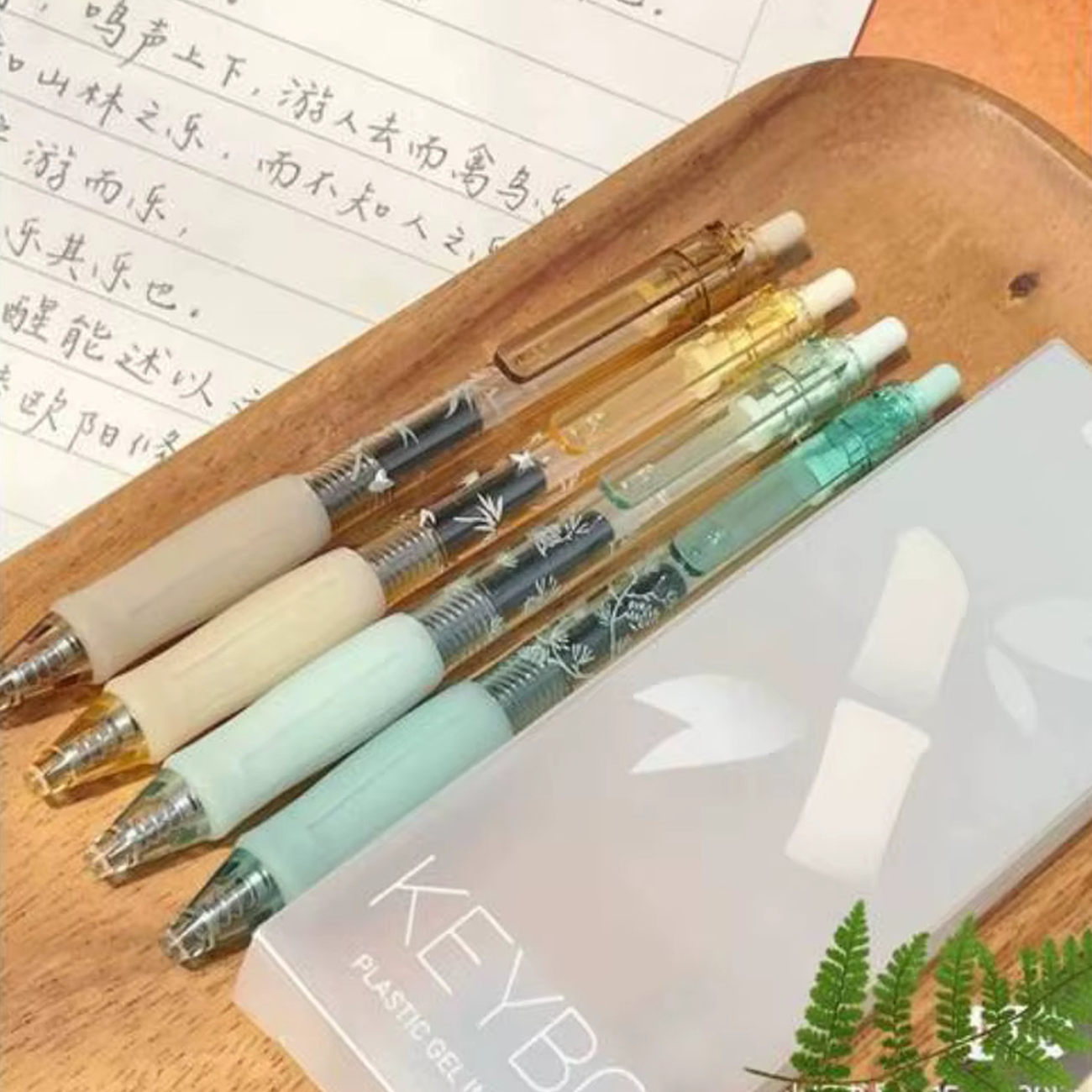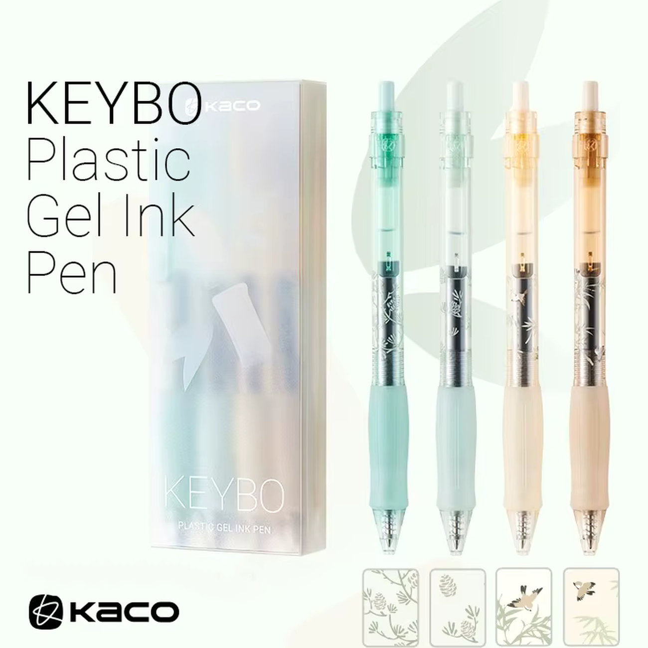 Kaco KEYBO Bamboo Gel Ink Pen Set, 4pcs Pattern Plastic