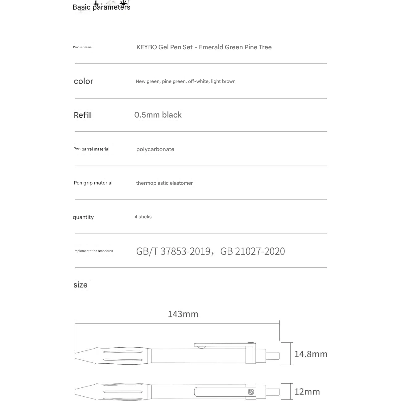 | ابعاد | طول: 143mm / قطر بدنه: 12mm / قطر با گیره: 14.8mm |