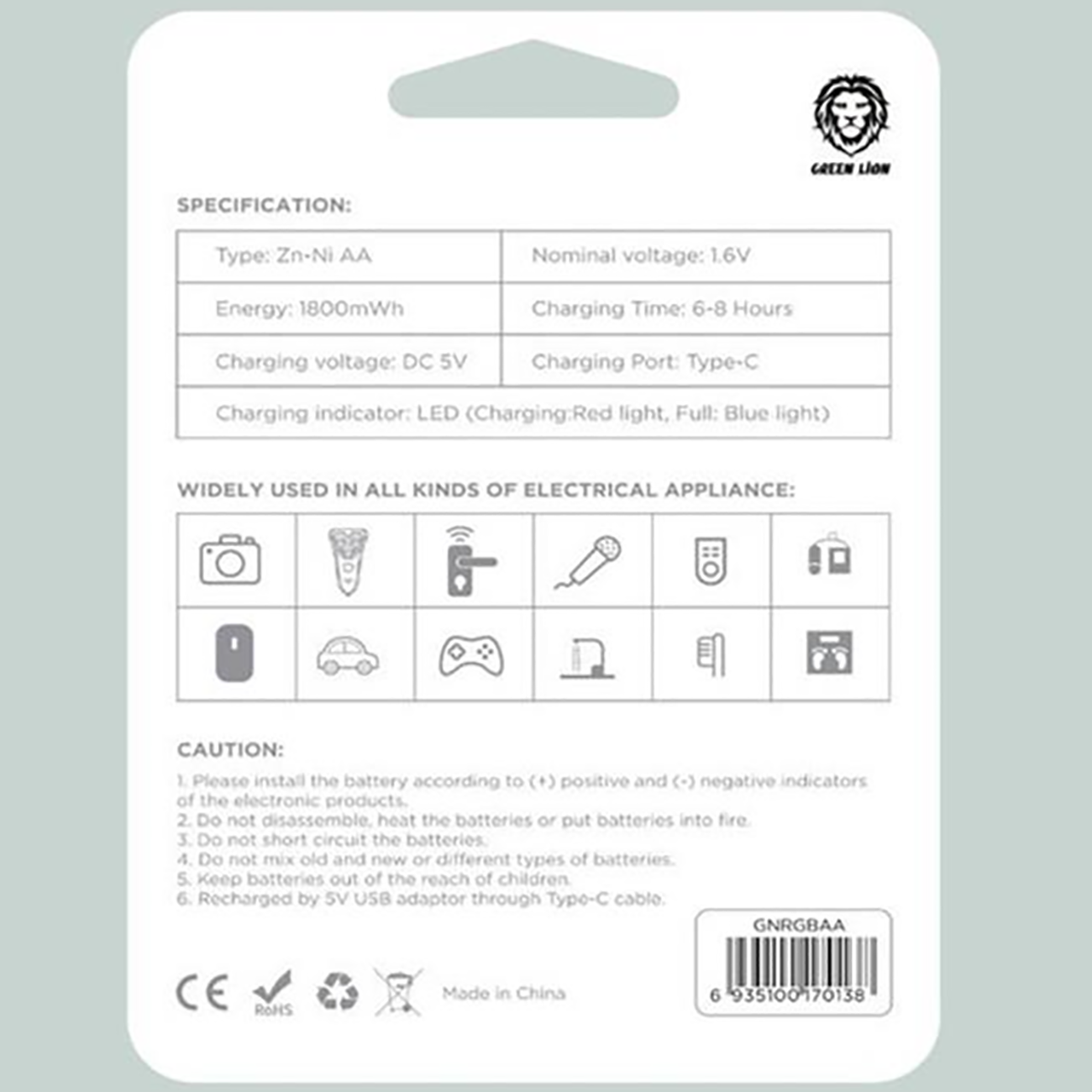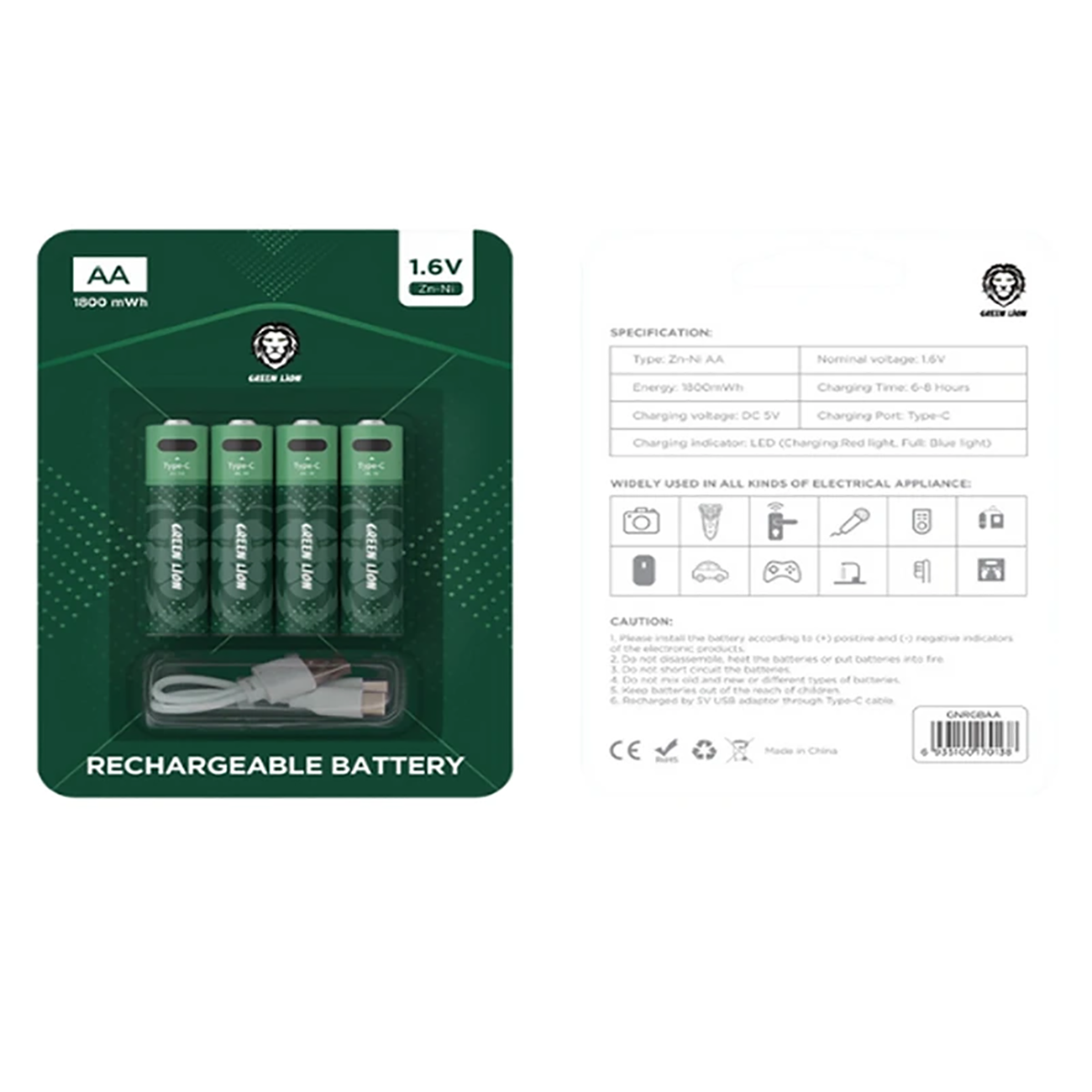 Green Lion Rechargeable Battery GNRGBAA 1800 mAh Pack of 4