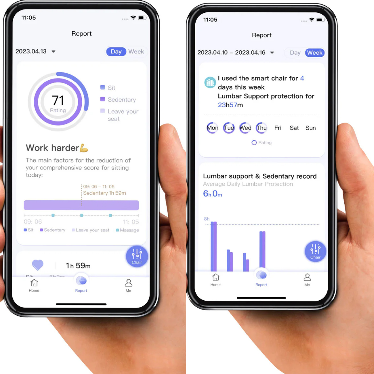 | ویژگی مدیریت نشستن | ثبت دادههای نشستن، هشدار 1 ساعت، تمرین 2 دقیقهای |