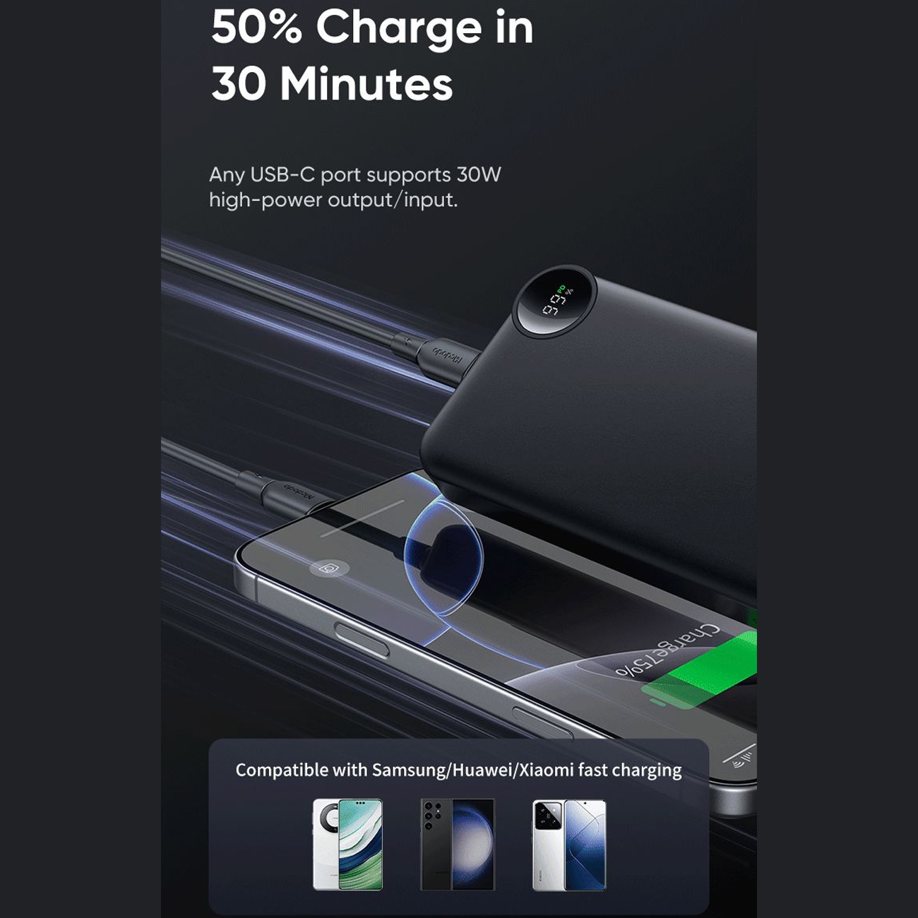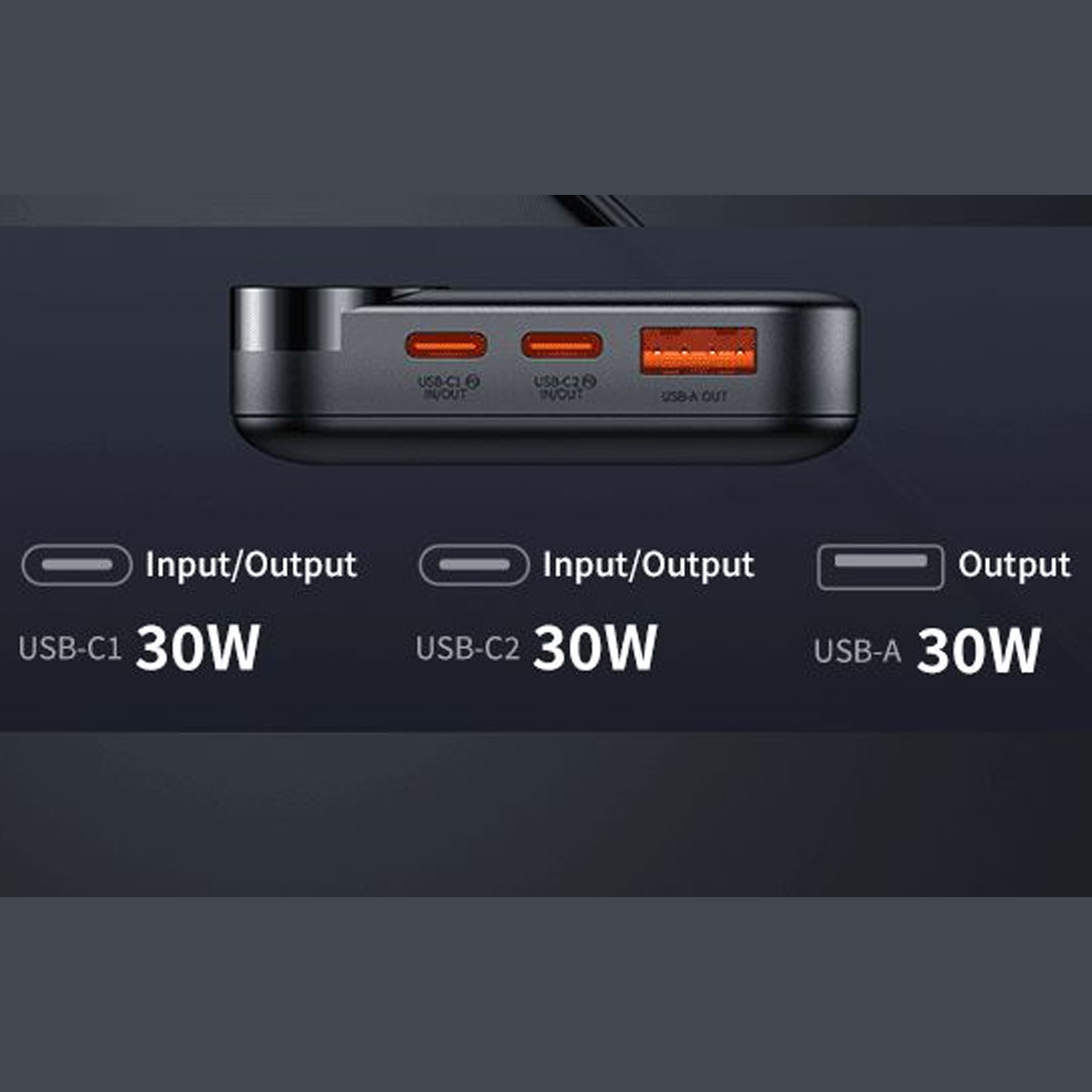 | سازگار با | پشتیبانی از شارژ سریع برای گوشیهای Apple، Samsung، Huawei و سایر گوشیهای دارای PD/QC/FCP/SCP/VOOC/AFC شارژ تبلتهای اپل و اندرویدی با پورت USB‑C یا USB‑A، با توان مناسب تا 30 وات هر دستگاهی که با پورت USB‑C یا USB‑A شارژ شود و جریان ورودی تا 30 وات را تحمل کند |