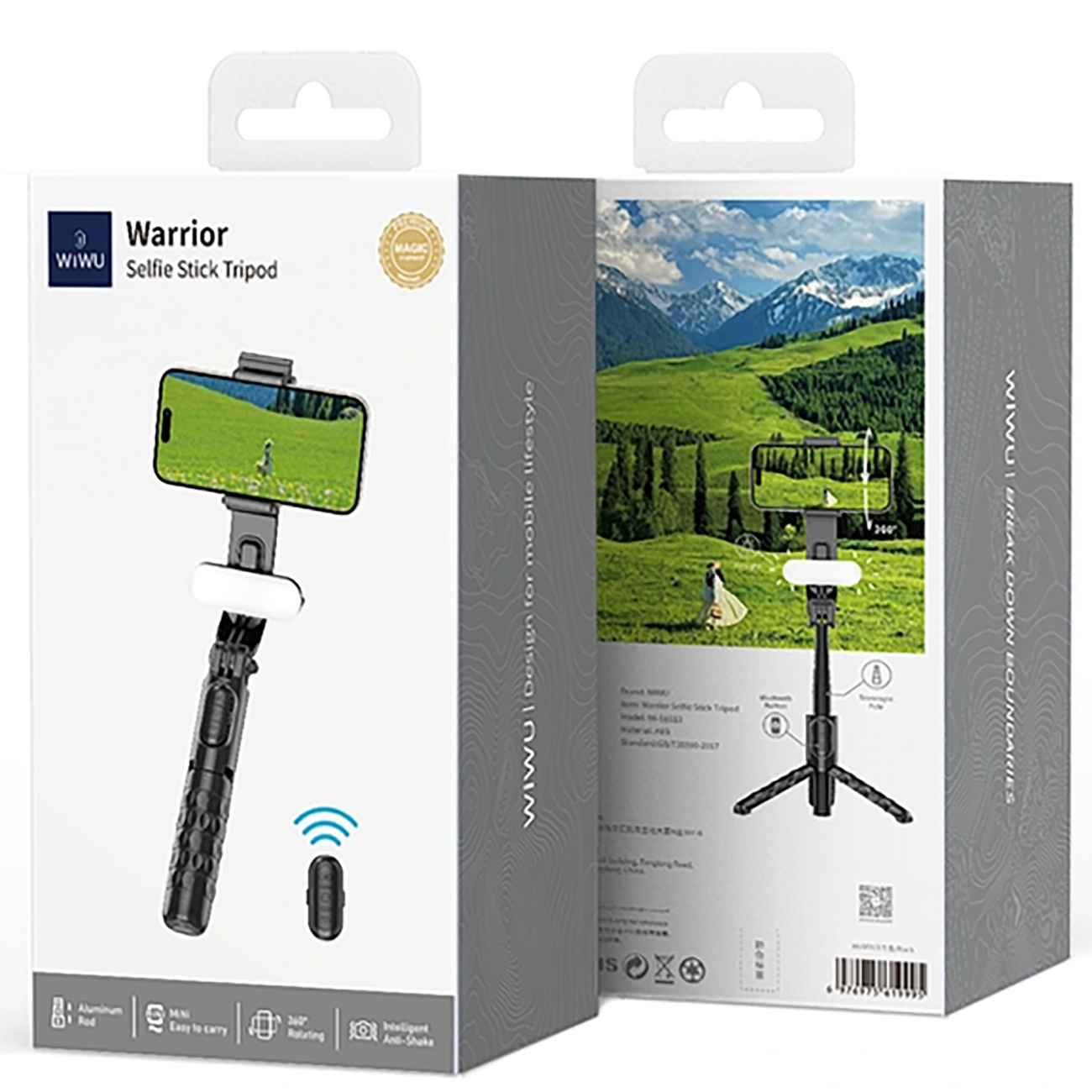 WIWU WI-SE013 Foldable Selfie Stick with Tripod, Wireless Connection and Beauty Light