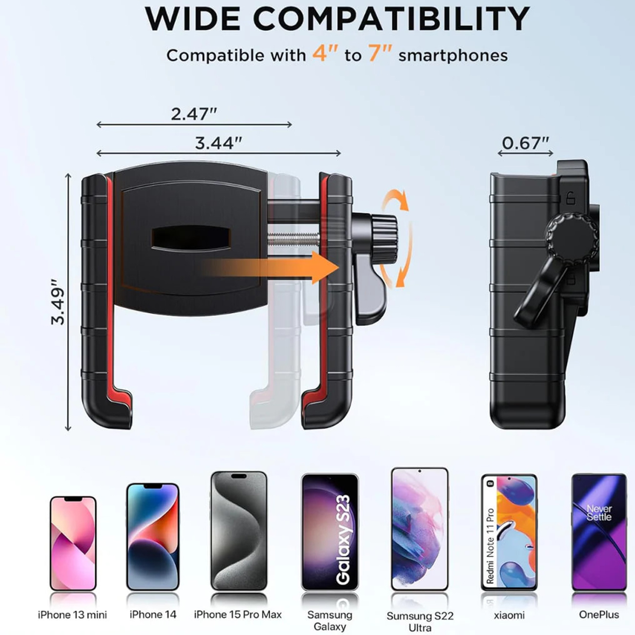 | سازگار با دسته فرمان | قطر 0.59" تا 1.57" (۱۵–۴۰ میلیمتر) |