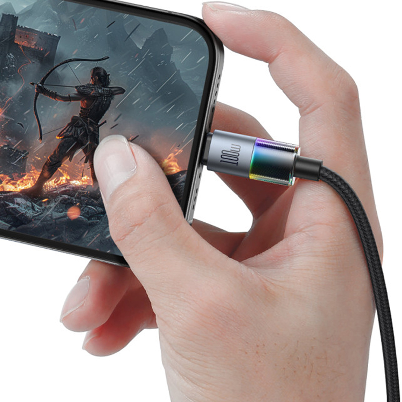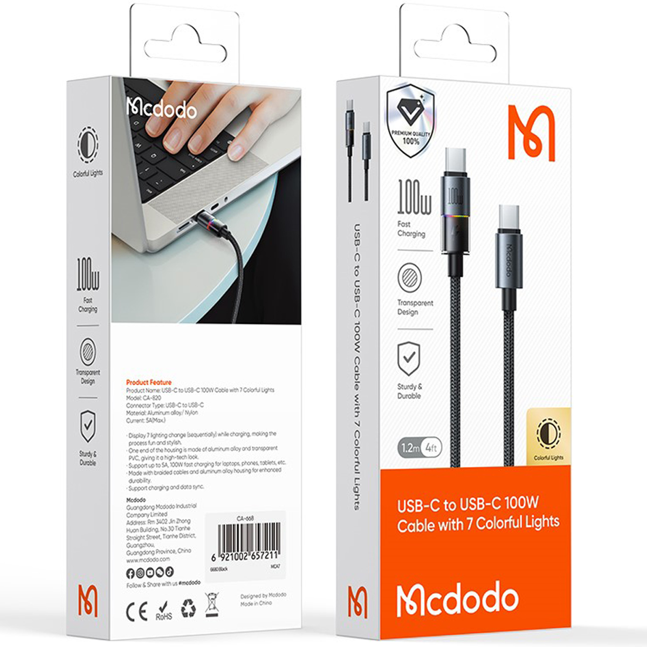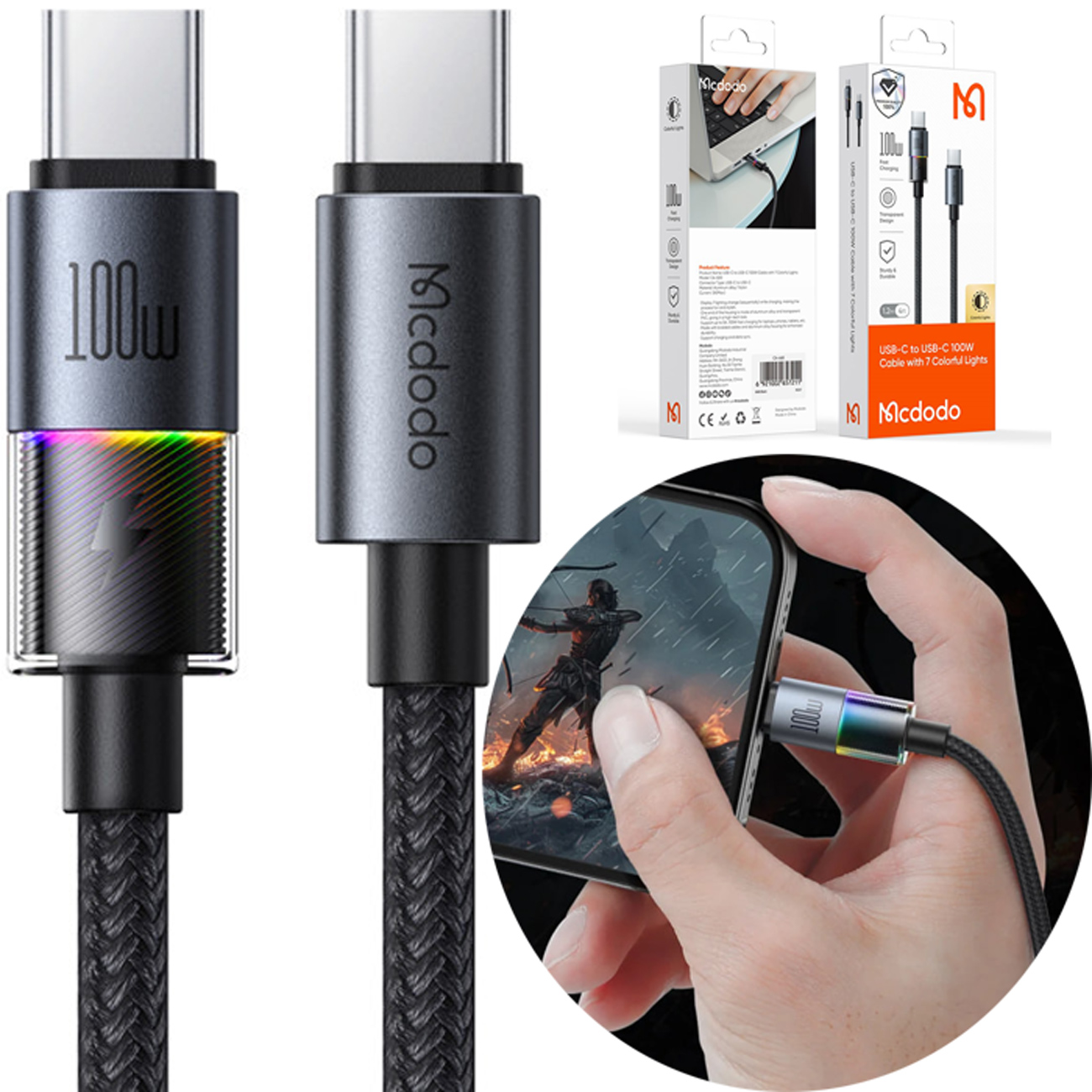 MCDODO CA8200 USB-C TO USB-C CABLE WITH 7 COLORFUL LIGHTS 1.2M (BLACK)