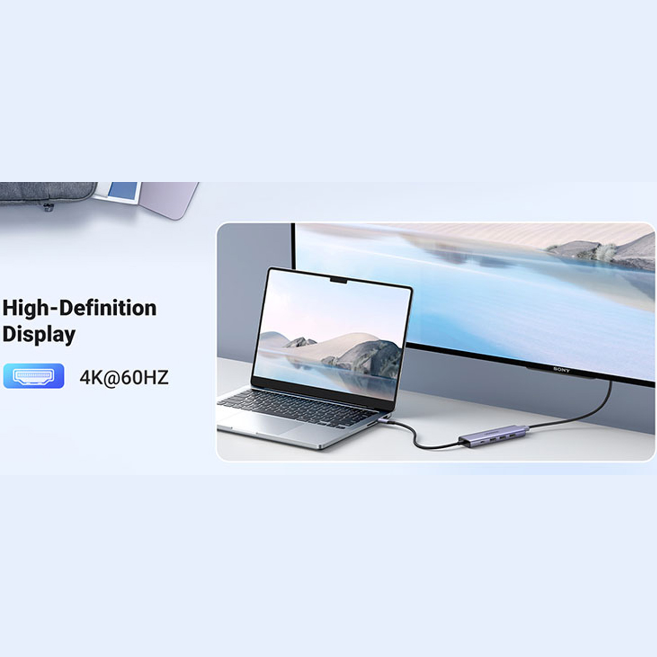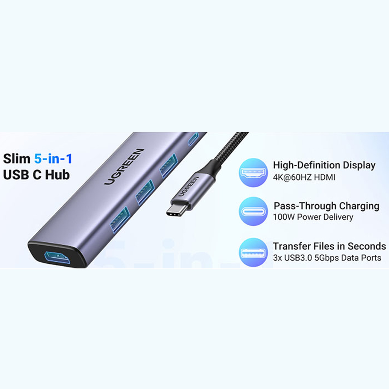 Ugreen CM511 15597 HUB 5 in 1 USB Type-C to HDMI 4K@60Hz, USB-A x3, 100W PD Charger