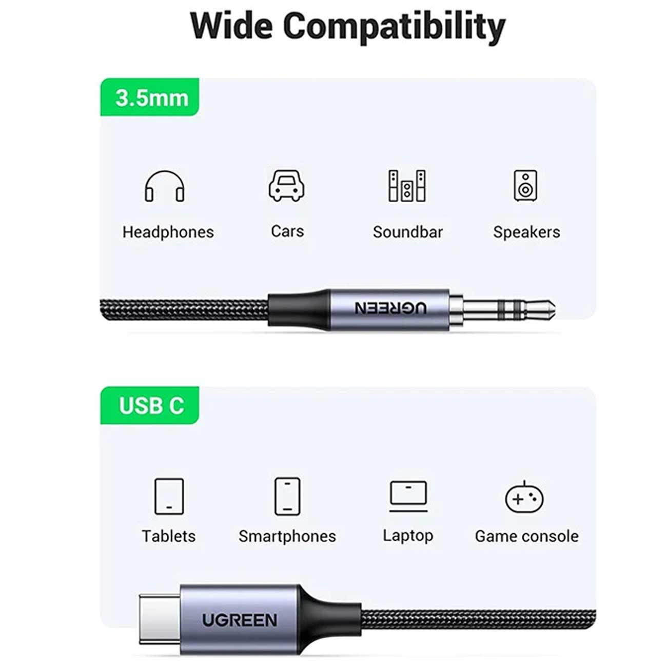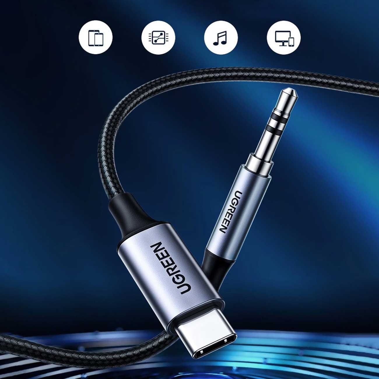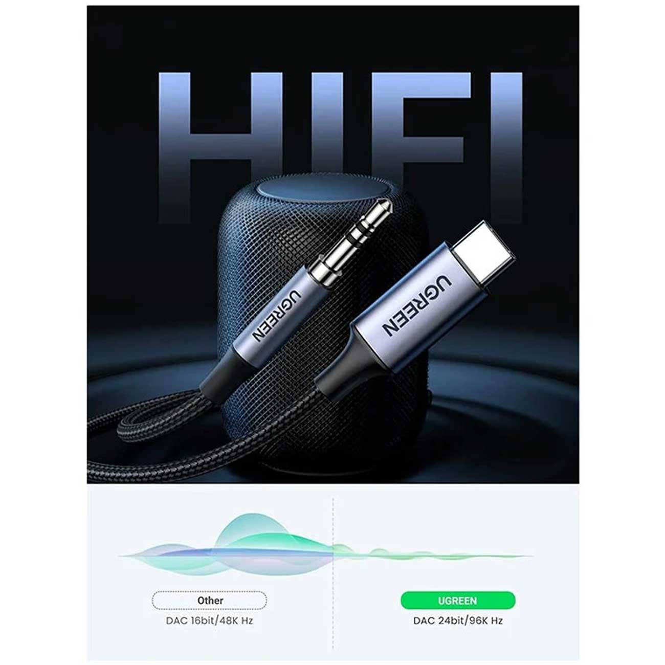کابل تبدیل تایپسی به جک 3.5 میلیمتری یک متری یوگرین ugreen CM450 20192 با تراشه DAC حرفهای