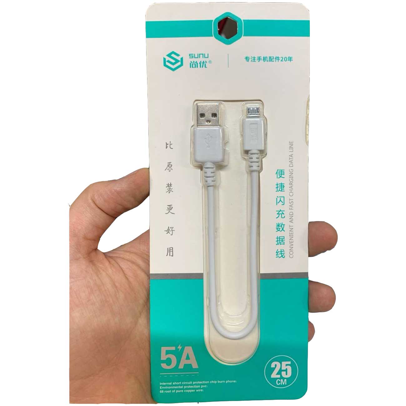 کابل شارژ کوتاه میکرویواسبی 3 آمپر 25 سانتی Sunu