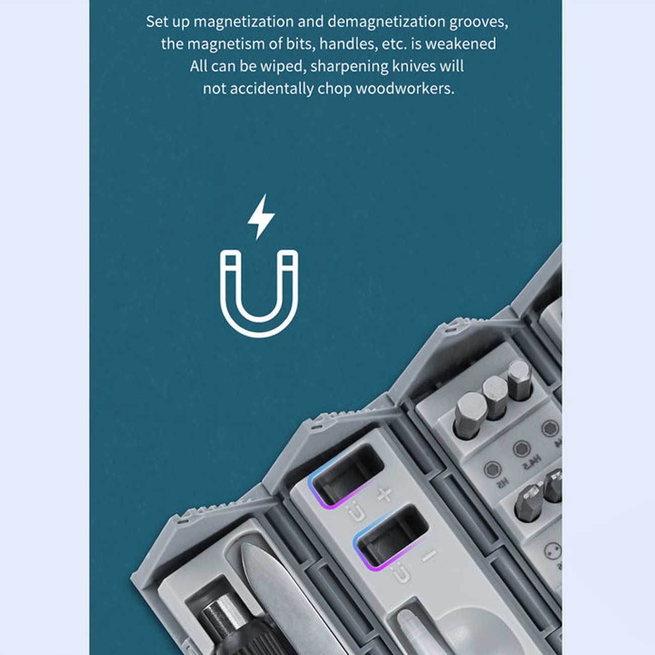 | ویژگی های خاص | جذب مغناطیسی پیچها، ابزار مغناطیسی برای آهنربایی کردن و رفع خاصیت مغناطیسی سریها |