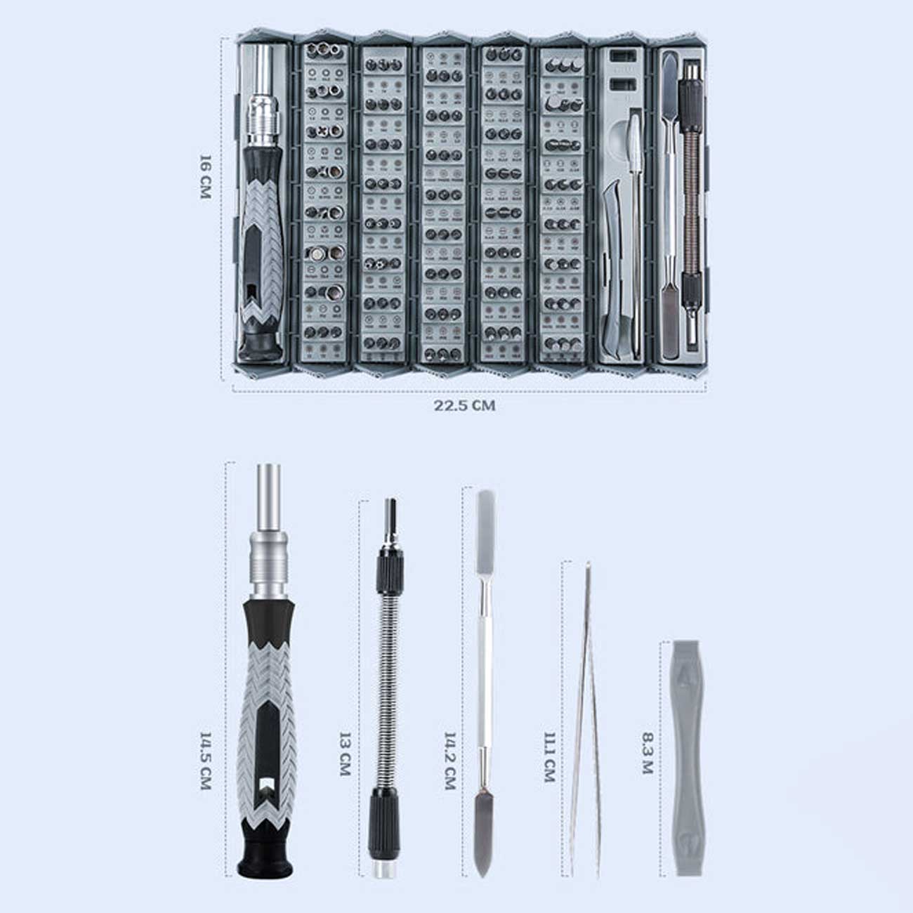 | تعداد ابزارها | 126 عدد شامل 120 سری پیچگوشتی و 6 ابزار جانبی |