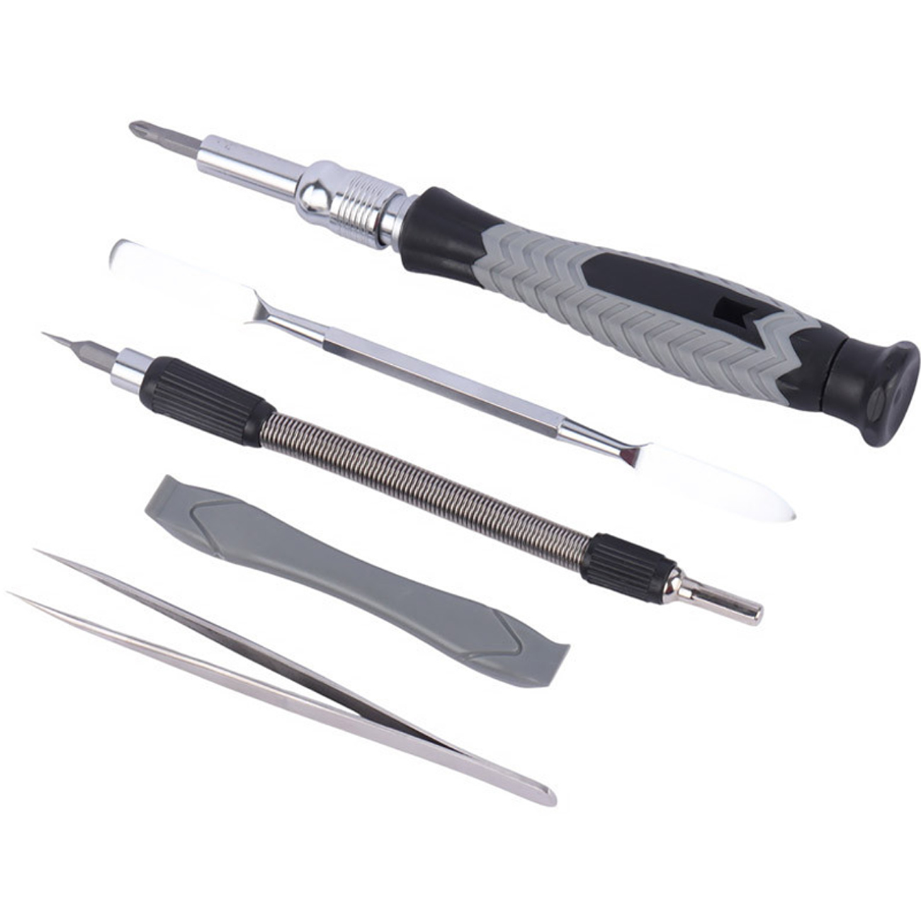 | ابزار جانبی | 1 دسته پیچگوشتی، 1 پنس استیل، 2 اهرم بازکن (اسپاجر)، 1 میله نرم فلزی، 1 ابزار مغناطیسی |