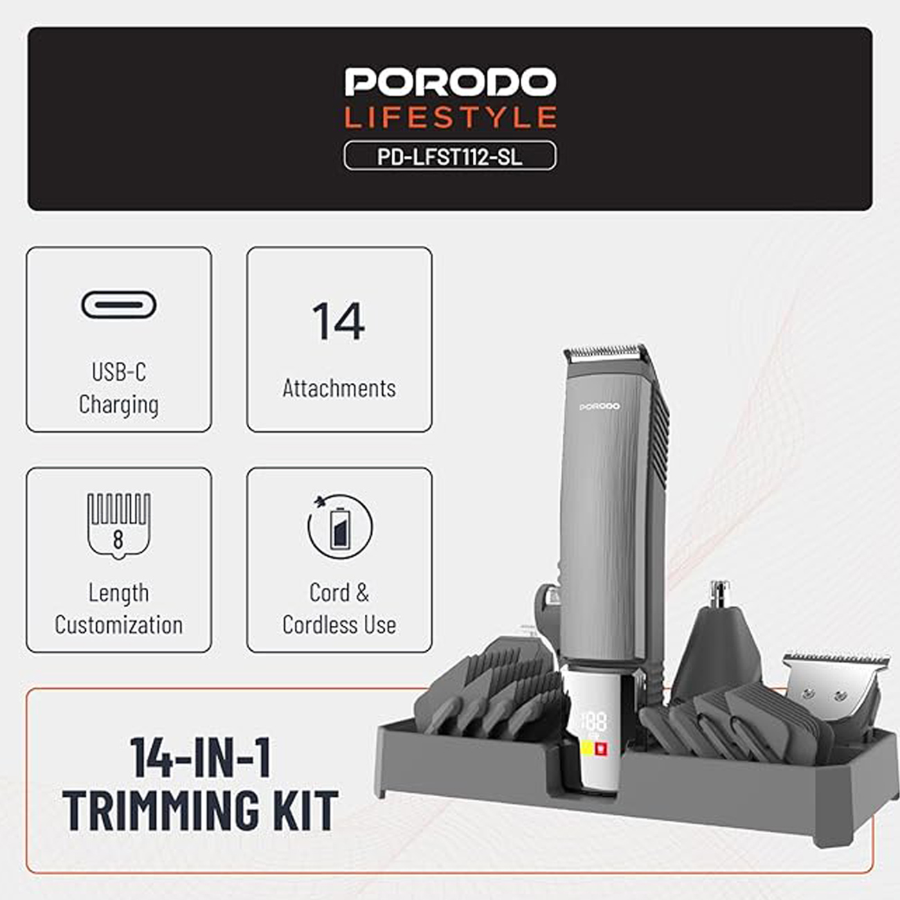 Porodo Lifestyle 14-IN-1 Trimming Kit PD-LFST112-SL