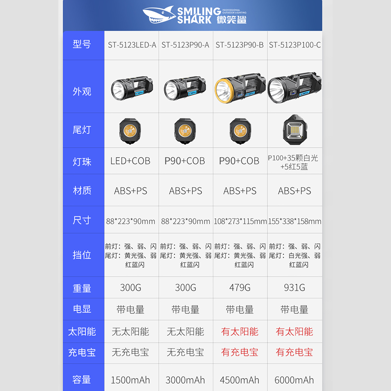 چراغ قوه شارژی و خورشیدی اسمایلینک شارک ST5123P90-B