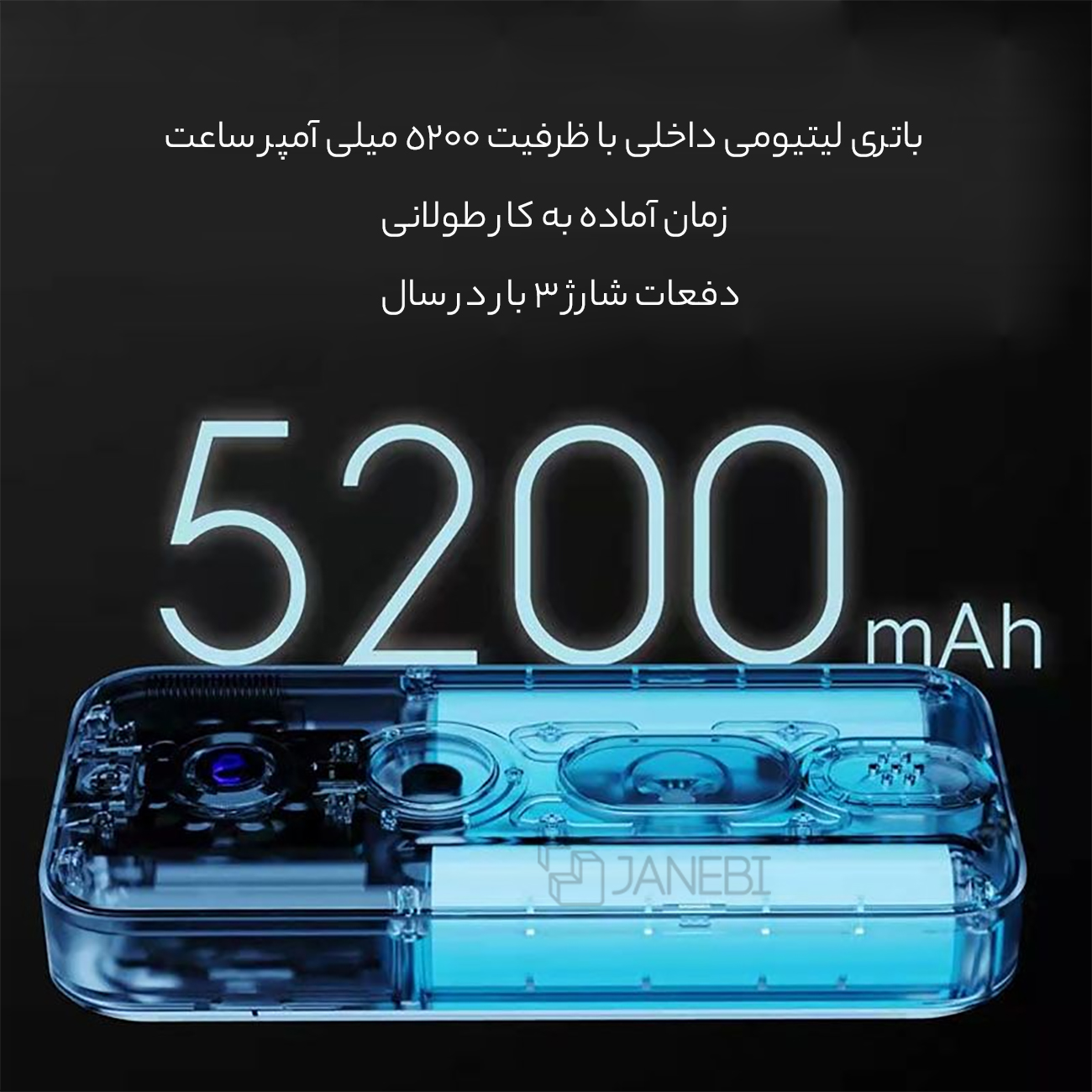 | ظرفیت باتری | 5200 میلی آمپر ساعت (TYP) |