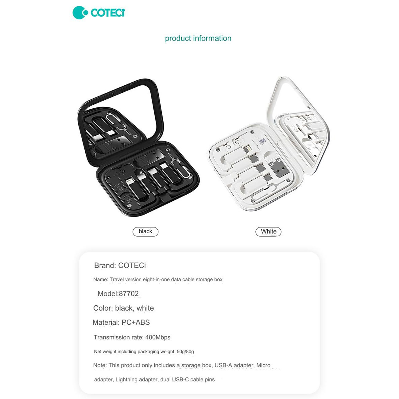 Coteetci Travel Version 8-in-1 Data Cable Storage Box 87702-BK 87702-WH