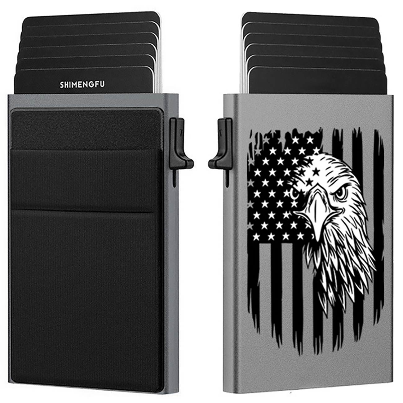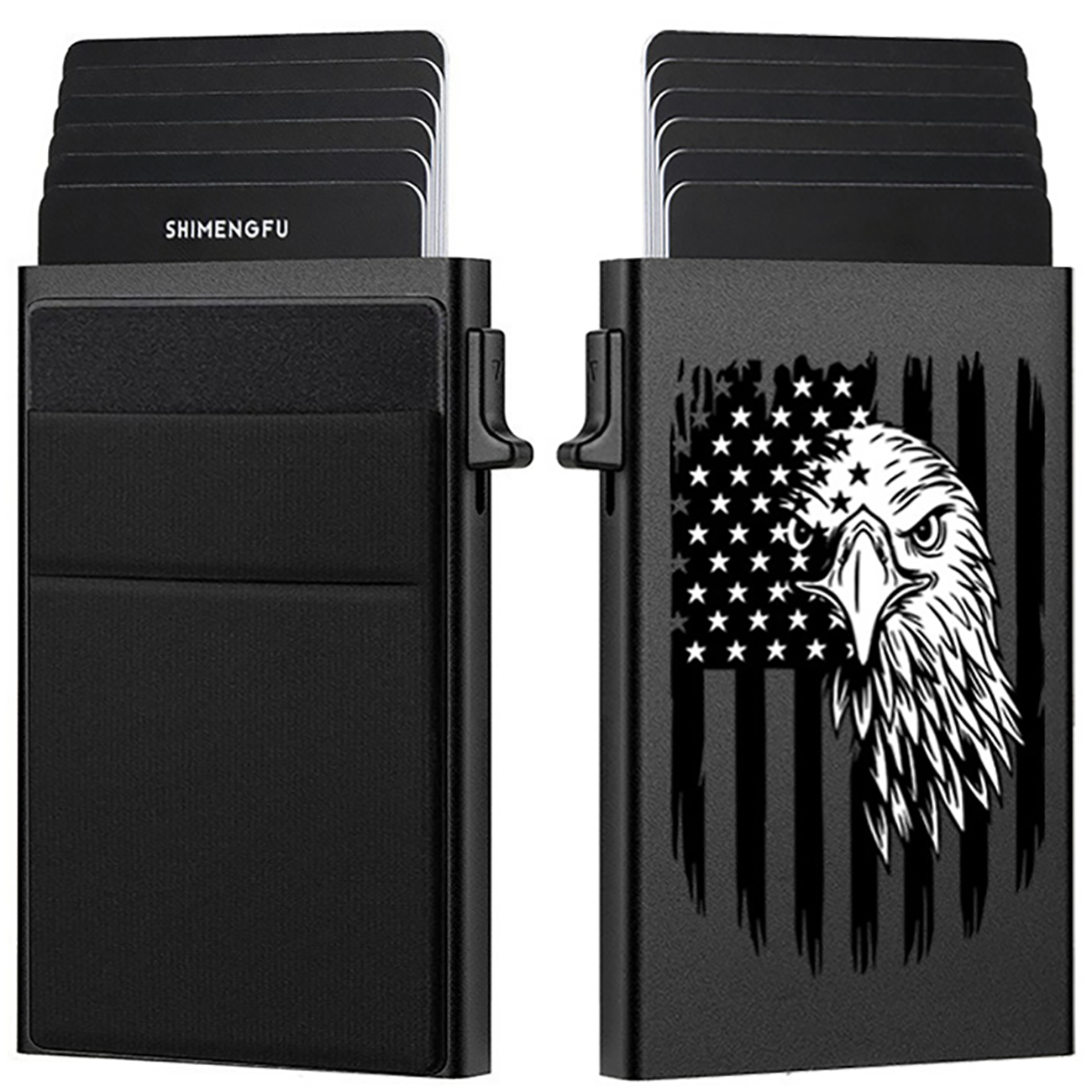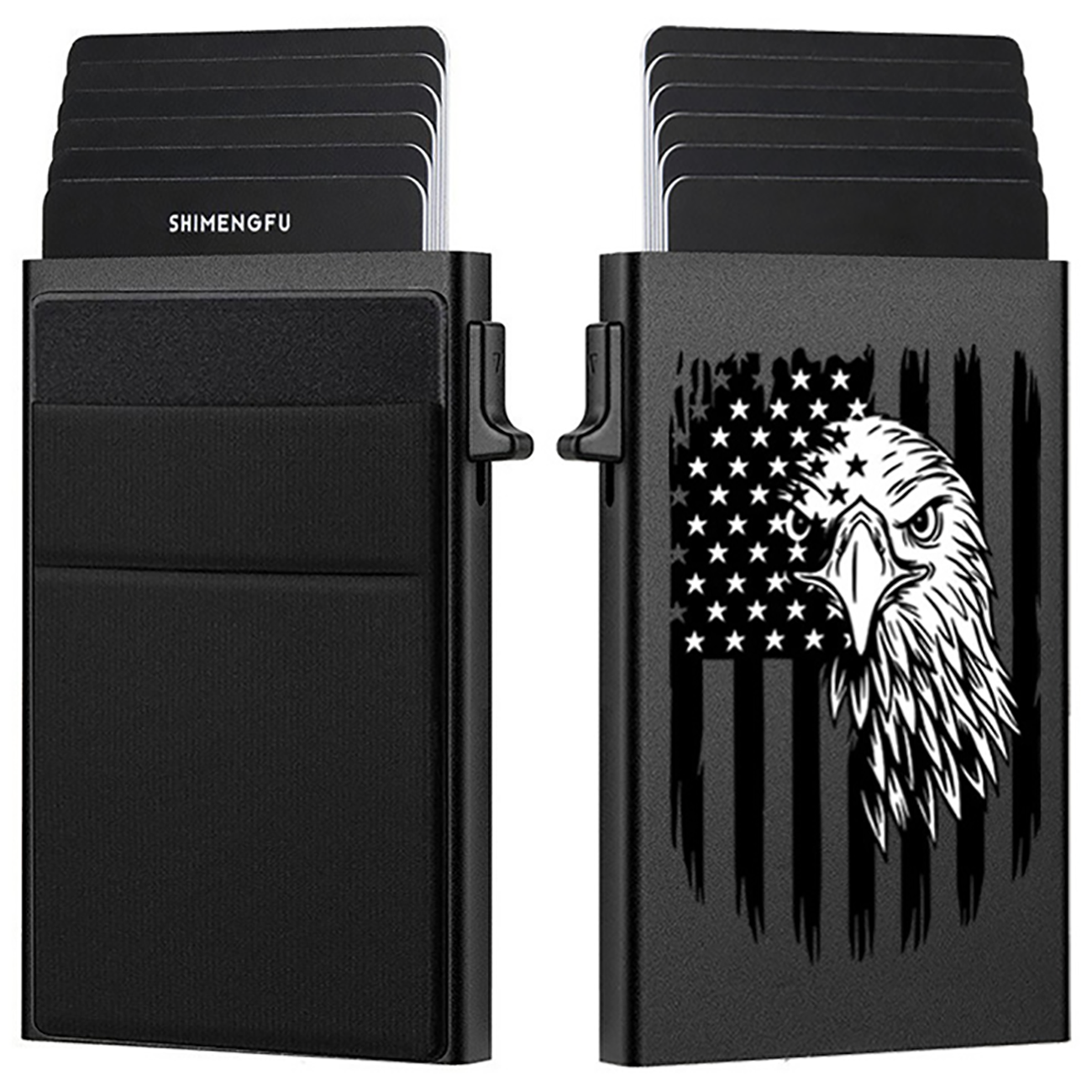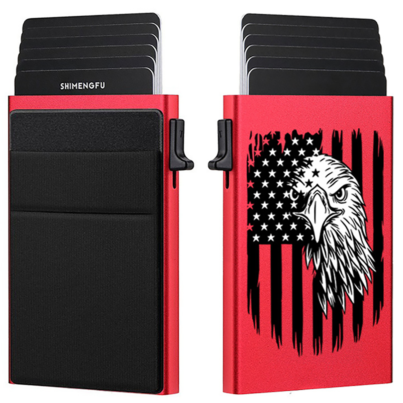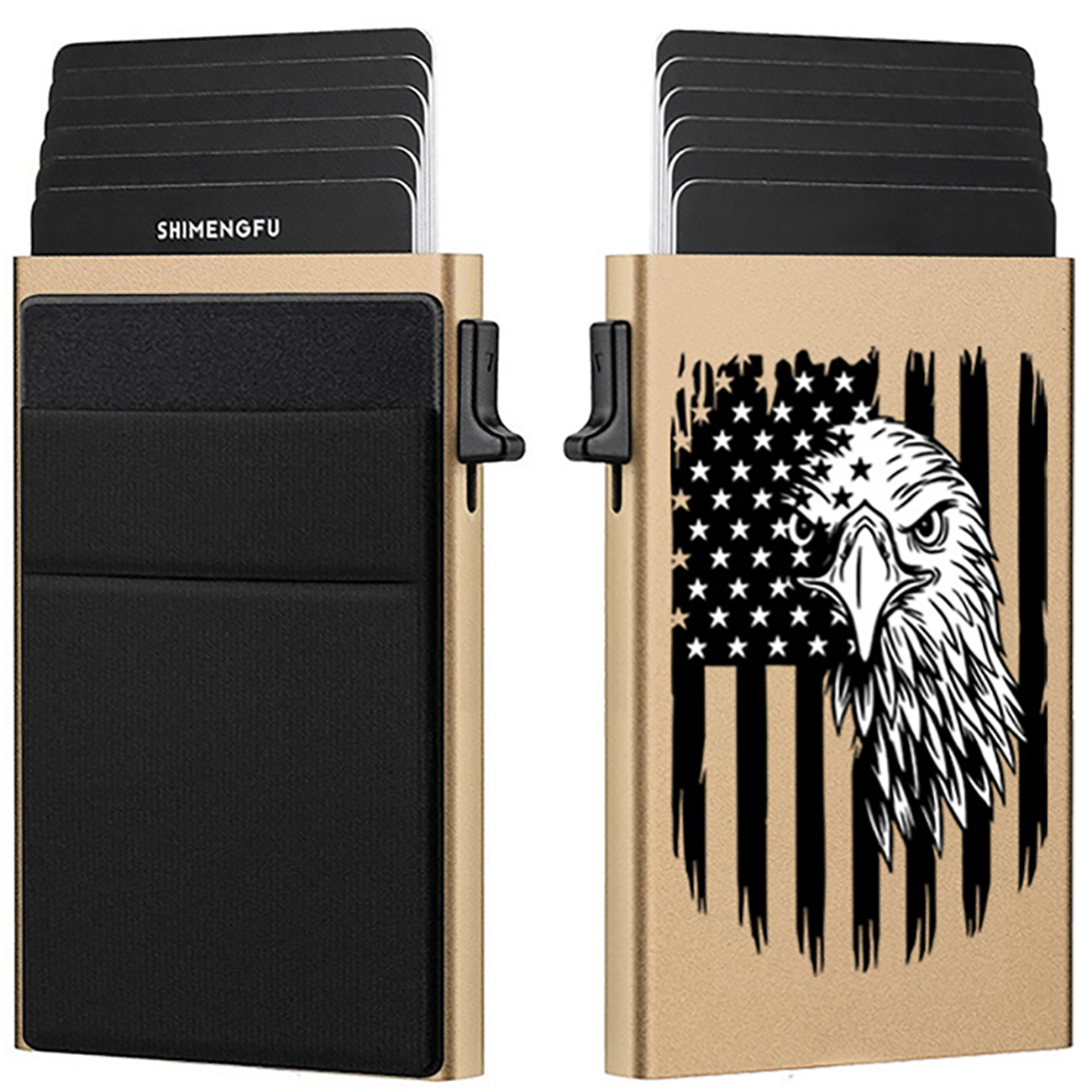 Anti-theft Brush RFID Side Push Pop-up Card Bag Men's Anti-degaussing Credit Card Storage Card Case Metal Card Box 124 eagle