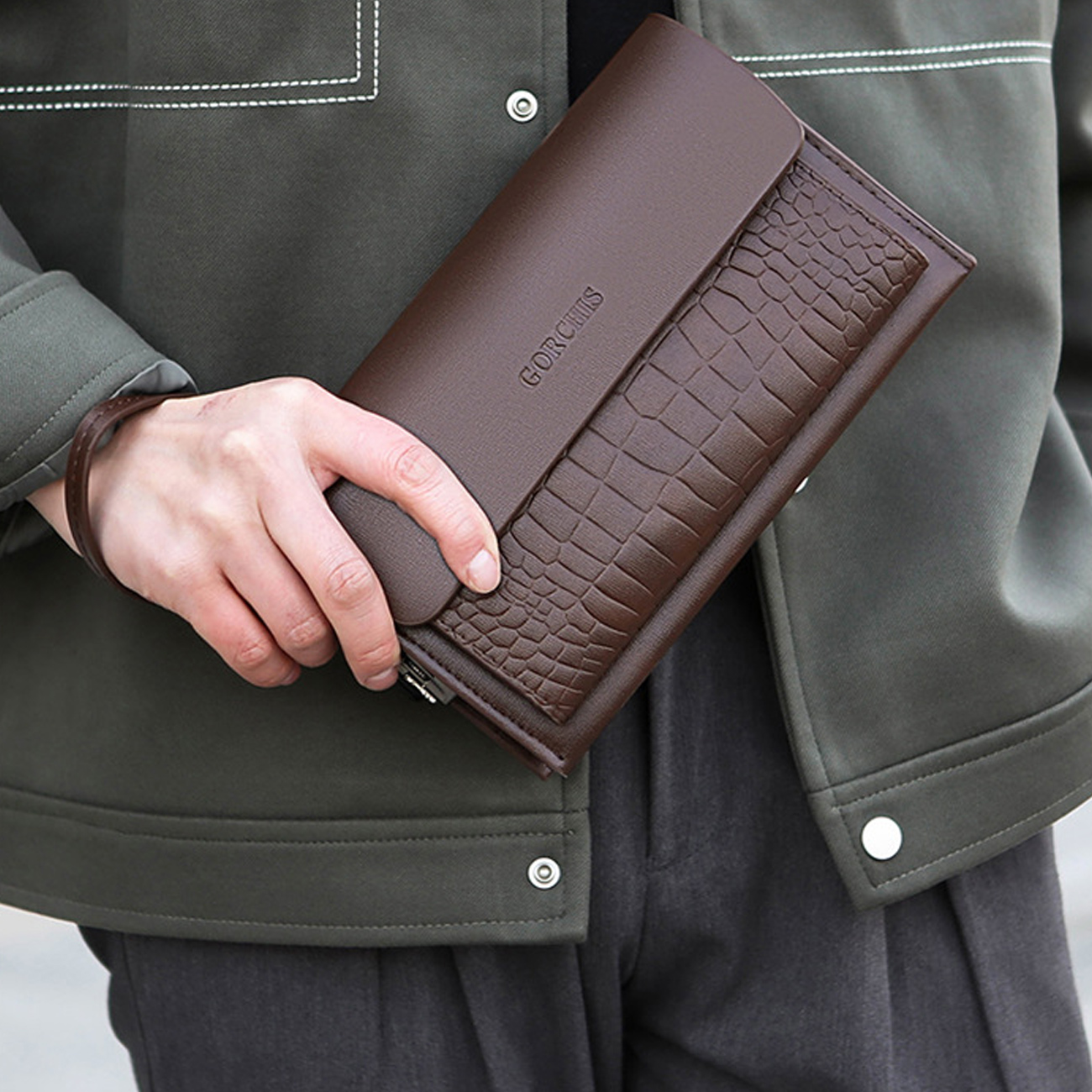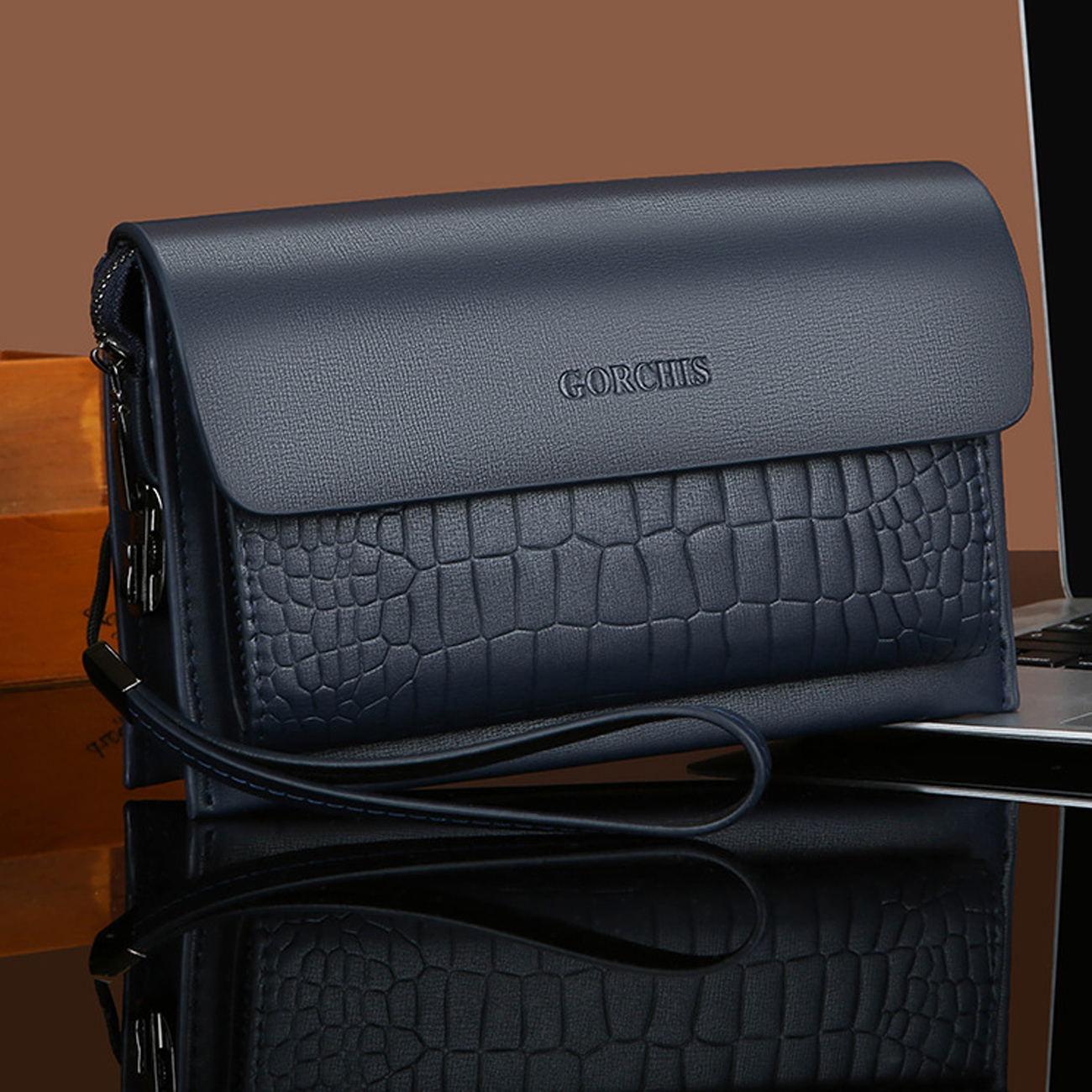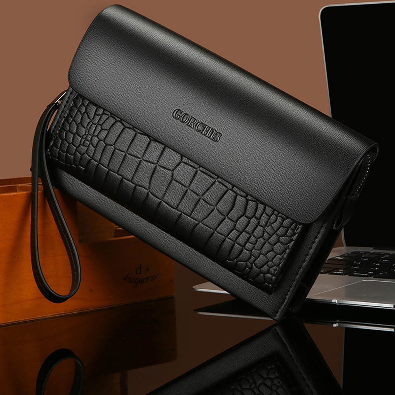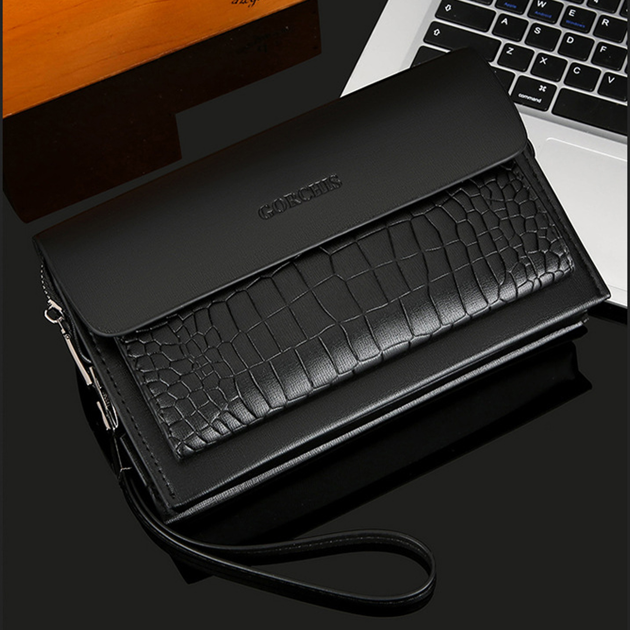 GORCHIS New Men's Clutch Bag Combination Lock Crocodile Pattern Hand Bag 8806