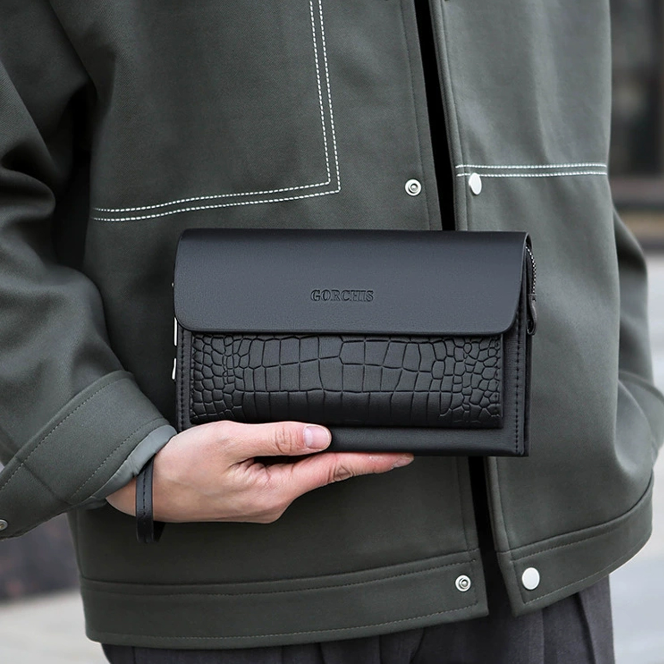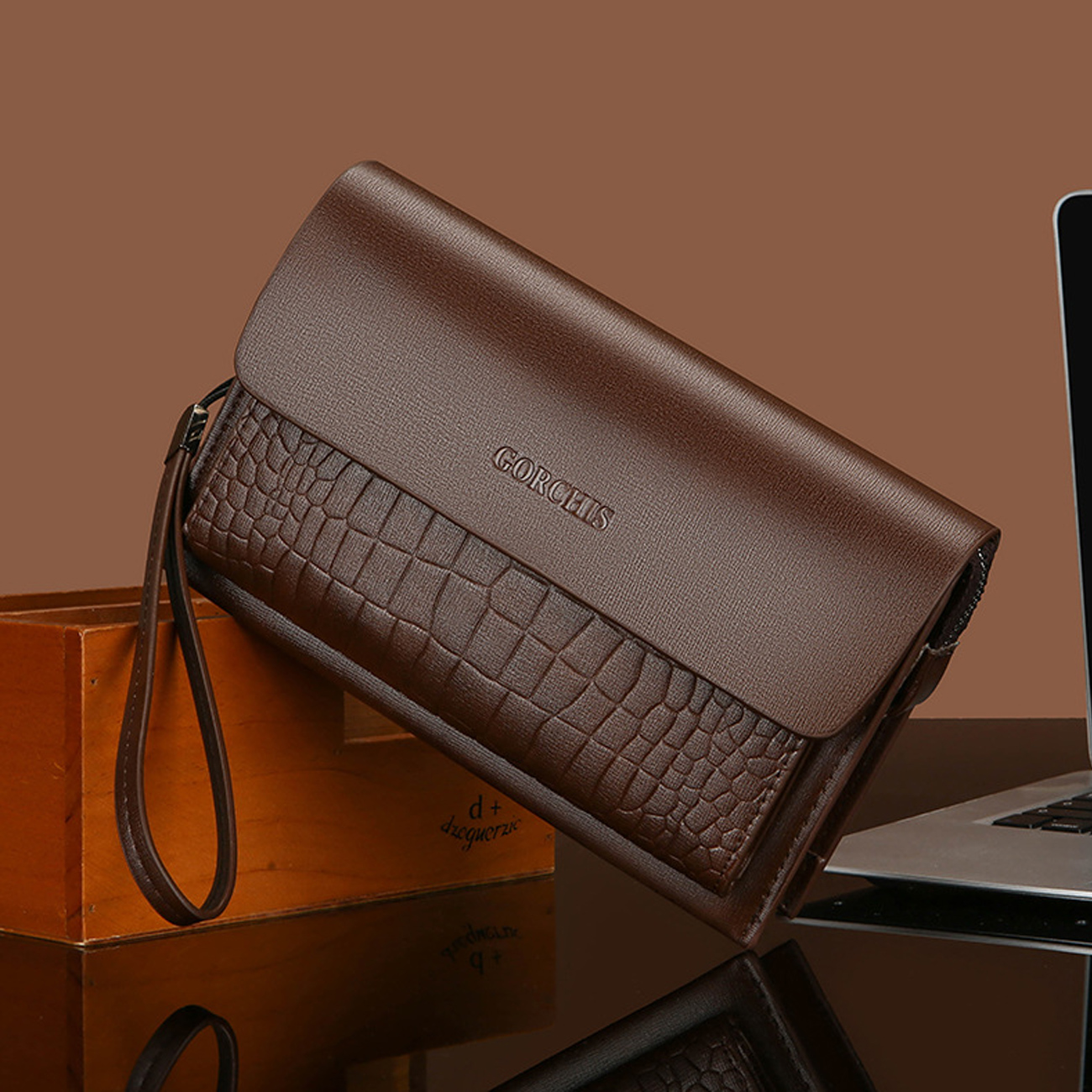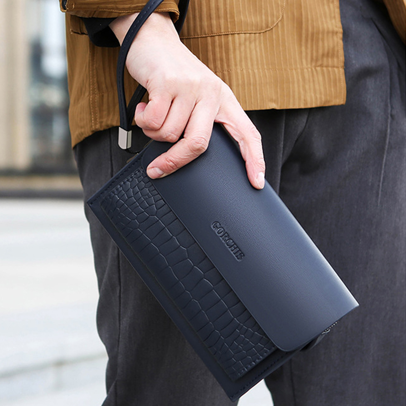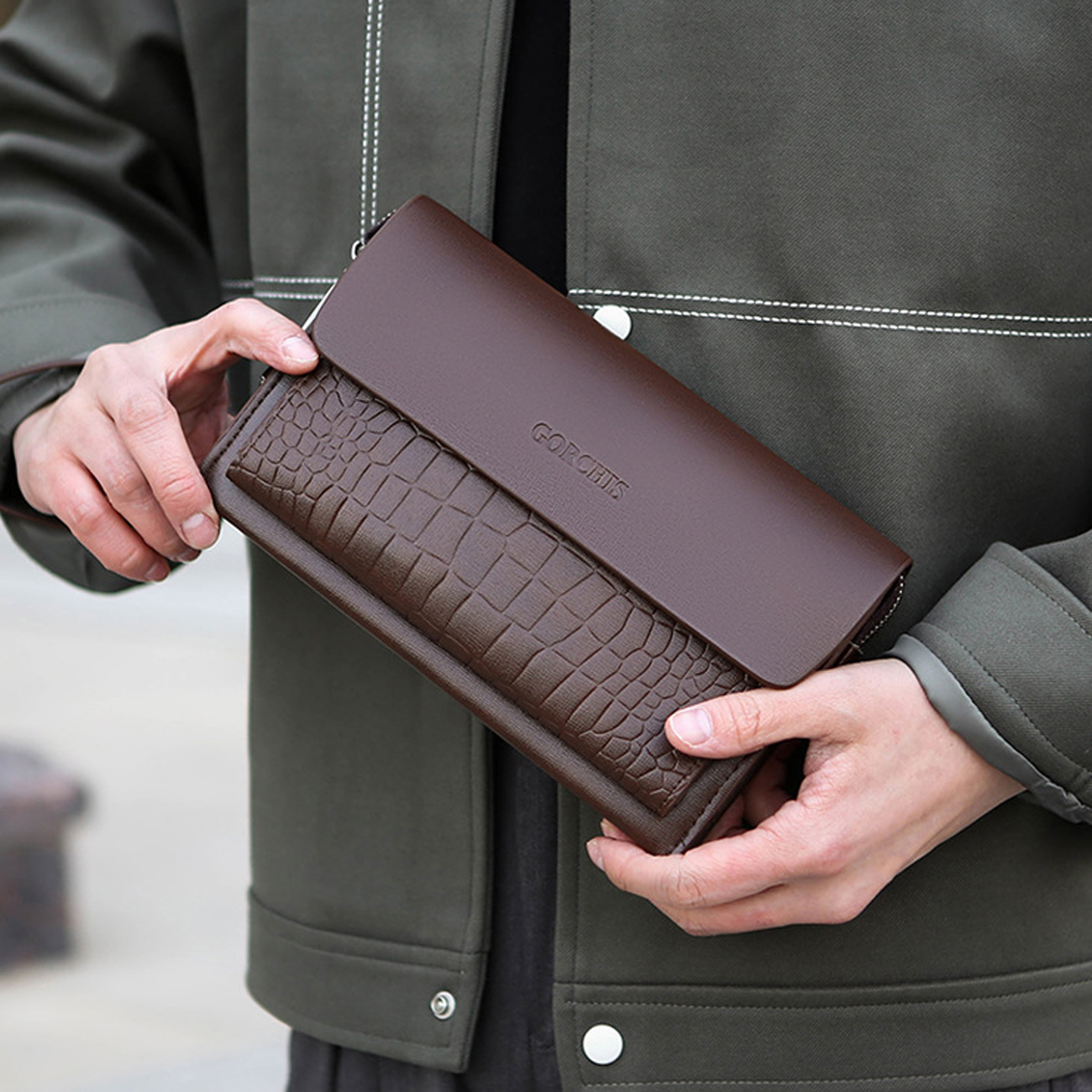 GORCHIS New Men's Clutch Bag Combination Lock Crocodile Pattern Hand Bag 8806