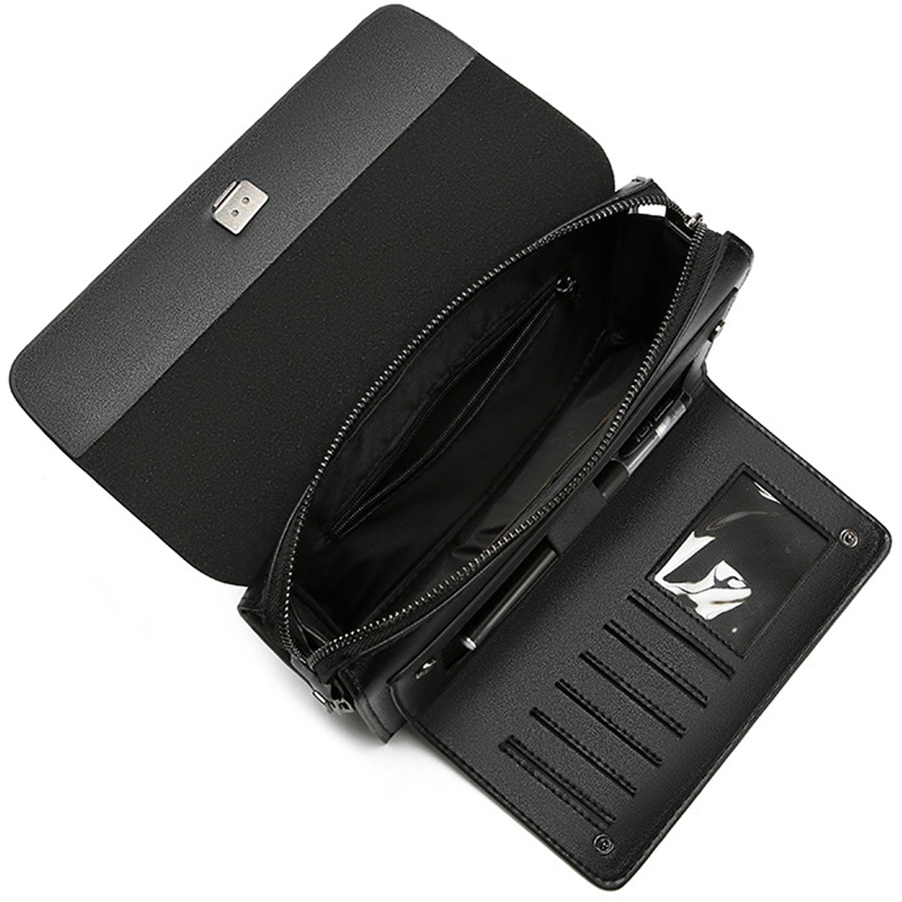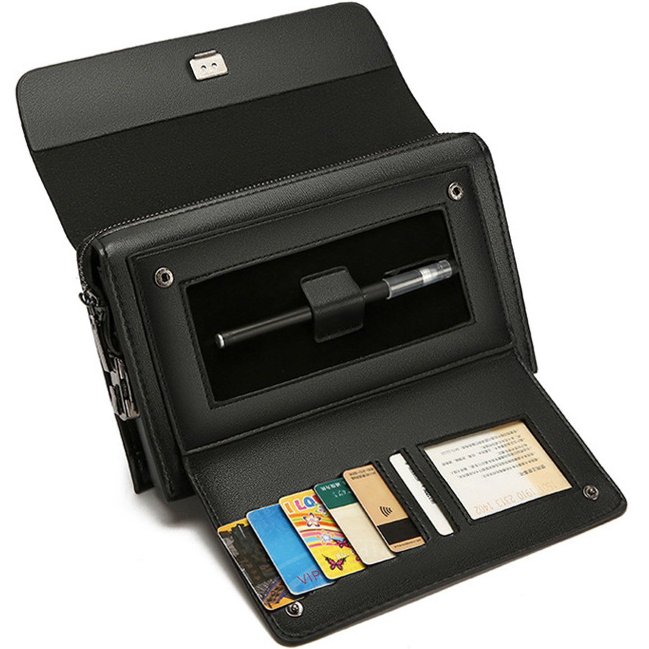 | ساختار داخلی | یک جیب زیپدار، شش محفظه کارت، محفظه اصلی وسایل، محفظه خودکار |
